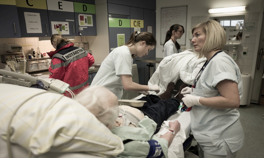 Hendrik Rüddel: Das Foto zeigt eine klassische Situation, ein „Schockraum“. Das meint nicht nur den Behandlungsraum in der Notaufnahme, sondern auch das Szenario. Der Rettungsdienst hatte gerade einen älteren Patienten mit Verdacht auf eine Sepsis eingeliefert, dann ging alles ganz schnell – zum Glück für diesen Patienten. Die Notwendigkeit, immer und immer wieder zu betonen, dass Sepsis ein lebensgefährliches Krankheitsbild ist, das als Notfall keine Verzögerung toleriert, besteht aber weiterhin und ist ein Schwerpunkt unserer Arbeit.